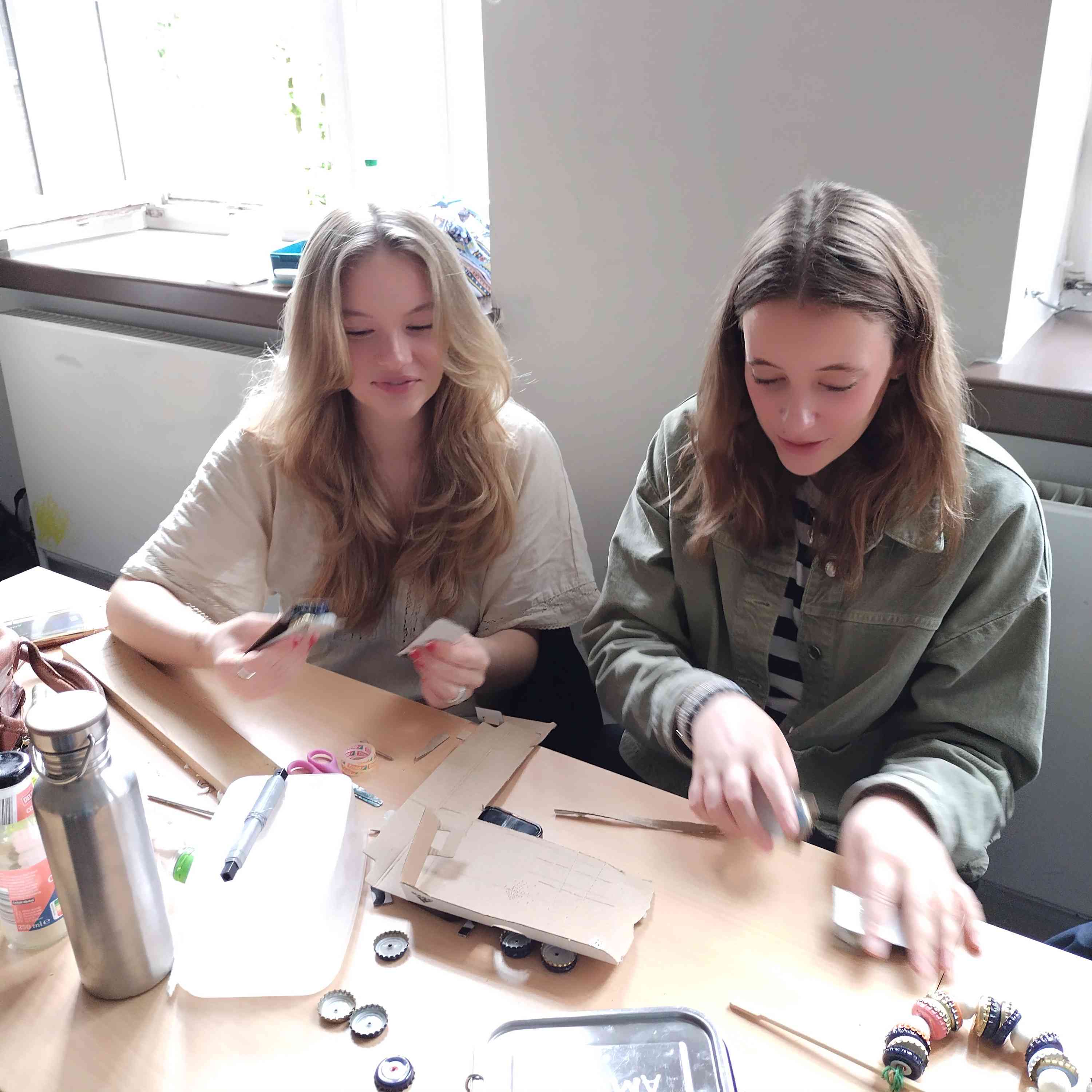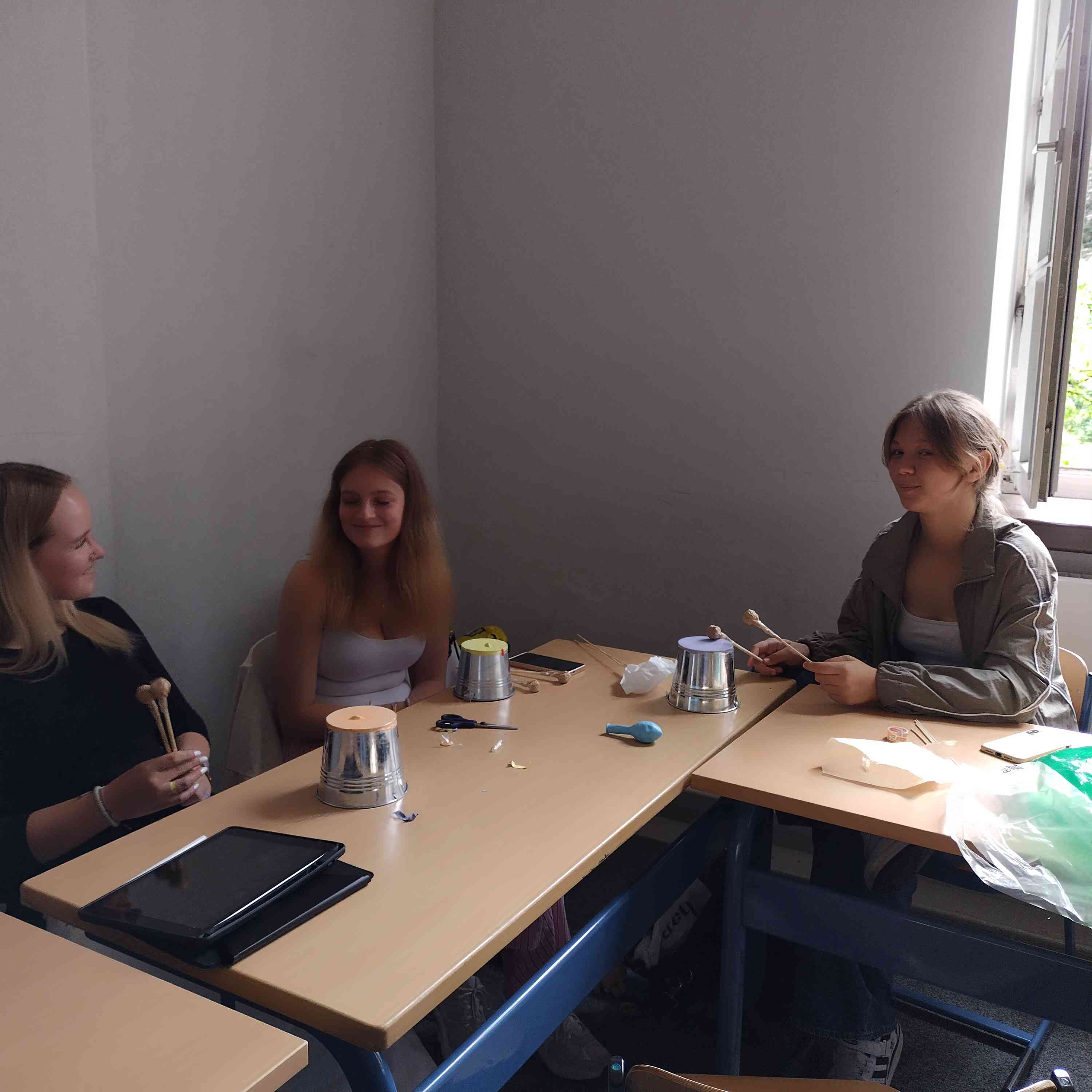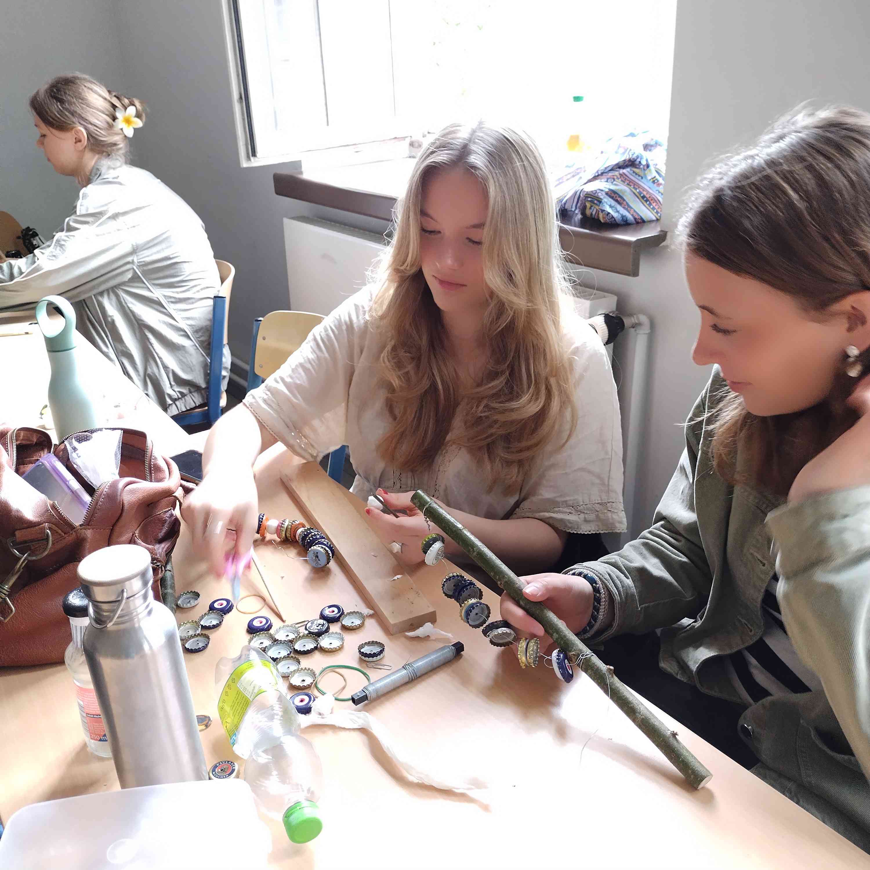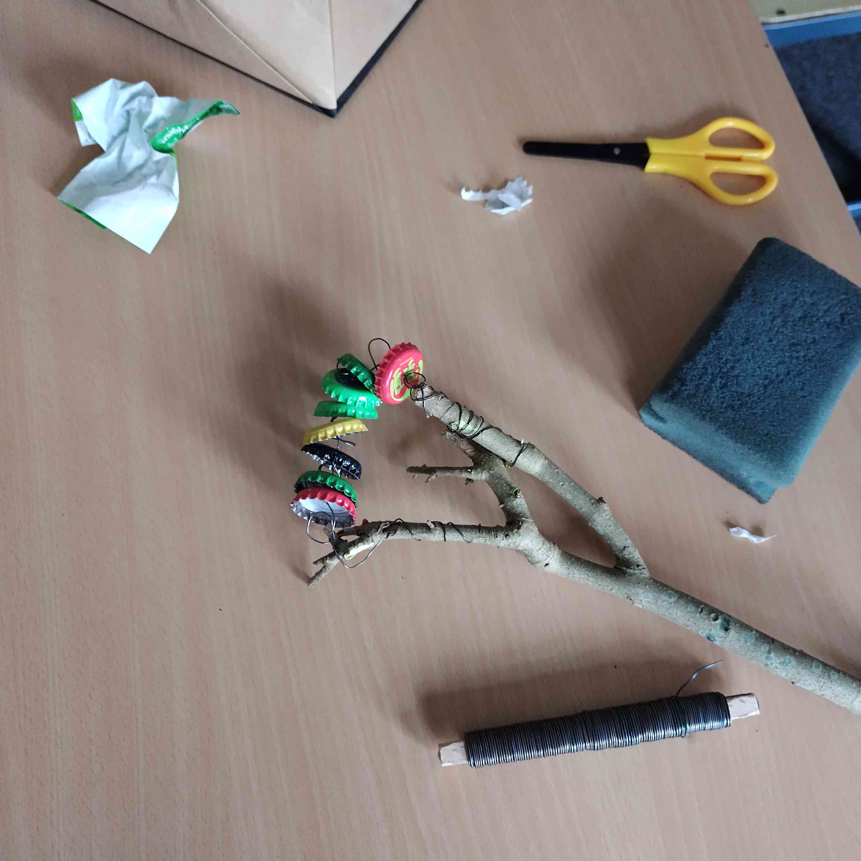 nutzlose Materialien in kreative Werke, wie beispielsweise Musikinstrumente verwandelt